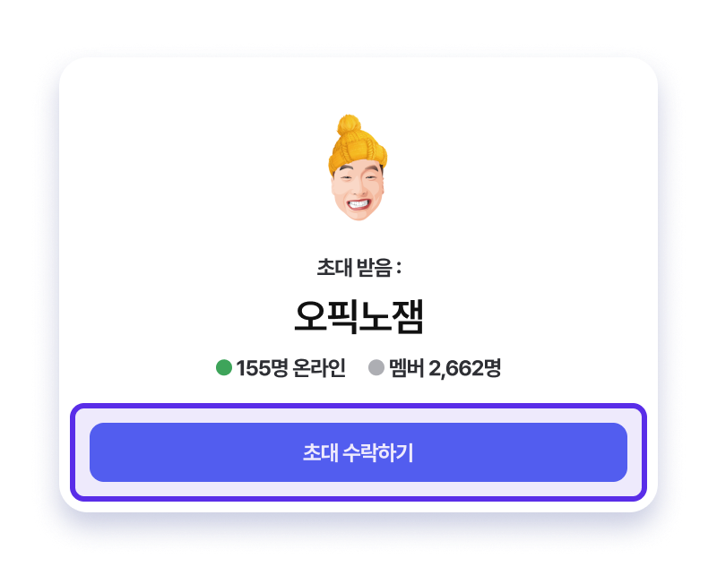 아래 버튼을 클릭해 ‘오픽노잼 디스코드 서버'의 초대를 수락해 주세요.