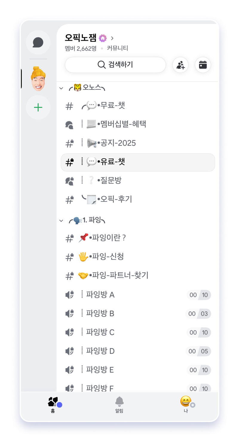 아래와 같이 오픽노잼스쿨의 멤버 전용 채널이 보인다면